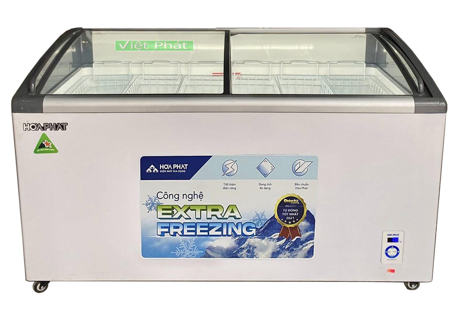 - Tủ đông Hòa Phát trưng bày có điều khiển điện tử, hiển thị nhiệt độ dễ dàng quan sát và thao tác